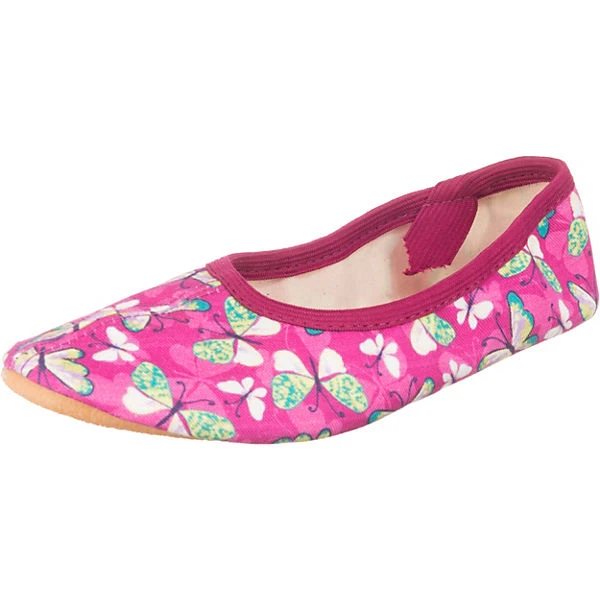 Beck Kinder Gymnastikschuhe/ Ballerinas HARMONIE in Fuchsia mit Schmetterling-Print, softer Decksohle und flexibler rutschfester Laufsohle – für Sport, Tanz, Freizeit