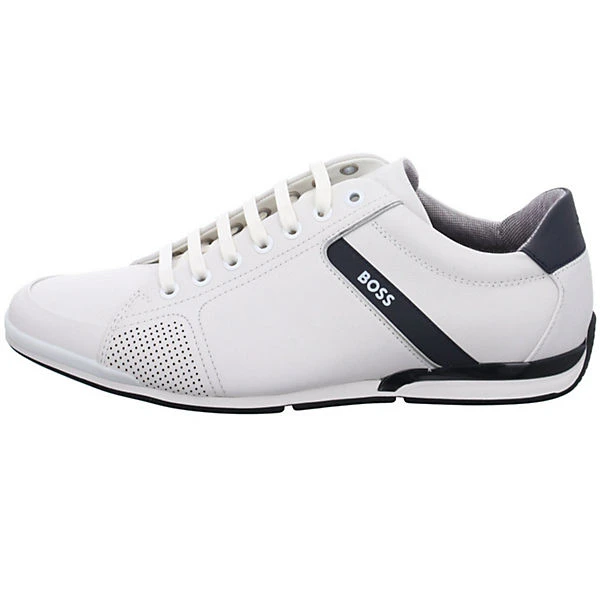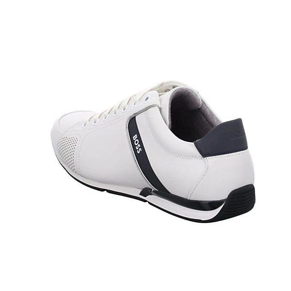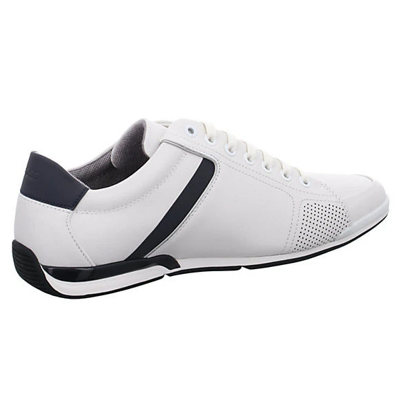 Mit diesem Edelsneaker von Boss lassen sich jede Menge sportlicher Freizeitlooks kombinieren. Ganz aus schwarzem, teilweise perforiertem Glattleder gefertigt erhält dieses Modell eine zeitlose Optik. Innen mit einem angenehmen Textilfutter und einer herausnehmbaren Innensohle ausgestattet, ist ein hoher Tragekomfort garantiert.