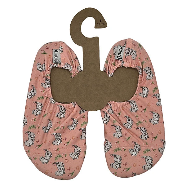 Die lustig bunten Kinderschuhe mit niedlichem Hasen-Motiv von Slipstop sind für viele Unternehmungen geeignet. Die Slipper können als Badeschuhe, Hausschuhe oder auch als Schuhe für den Kindergarten, Hort und vieles mehr verwendet werden. Die Anti-Rutsch-Sohlen sorgen für gute Haltbarkeit auf vielen Untergründen. Durch den Gummizug kann Ihr Kind die Schuhe ganz leicht selbst an-und ausziehen. Überdies haben die Schuhe einen Lichtschutzfaktor 50 – so ist die Haut Ihres Kindes auch an den Füßen geschützt.VORSICHT:Mit Slipstop sinkt die Rutschgefahr auf nassen und rutschigen Oberflächen im Vergleich zum Barfuss laufen. Rutschgefahr gibt es trotzdem immer.