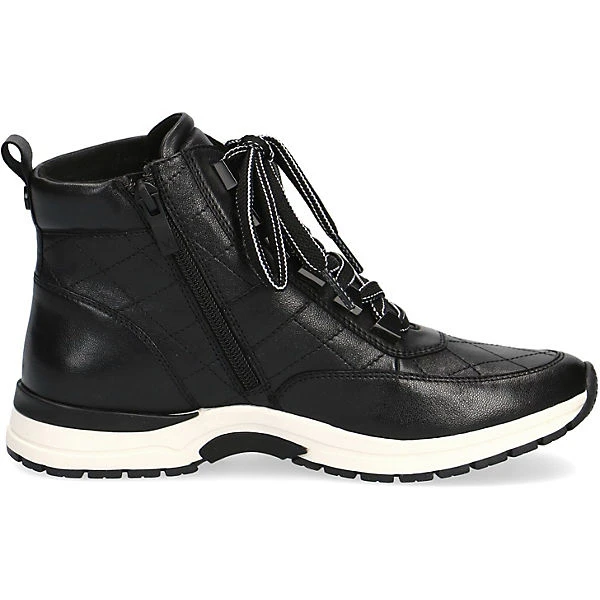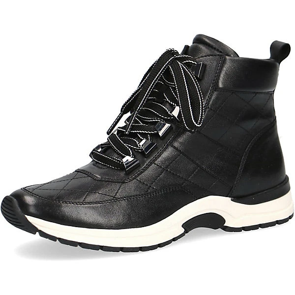 Hier präsentiert CAPRICE einen sportlichen eleganten High Top Sneaker aus hochwertigem Leder. Durch sein schlichtes Auftreten ist dieser Schuh vielseitig zu kombinieren. Kontrastreiche Details und einige Ziernähte runden das Gesamtbild gekonnt ab. Durch die schöne Schnürung lässt sich der Sneaker perfekt an den Fuß anpassen und der zusätzliche Reißverschluss garantiert eine komfortables An-und Ausziehen.