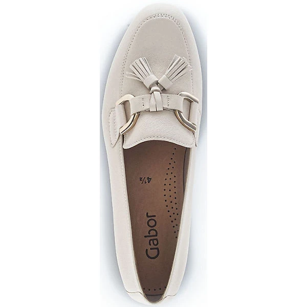 Unterstreichen viele verschiedene Looks: Diese stilsicheren Loafers von Gabor. Die Decksohle besteht aus natürlich atmungsaktivem Echtleder, das ein angenehmes Tragegefühl unterstützt. Das Obermaterial zeichnet sich durch das hochwertige, echte Glattleder aus.