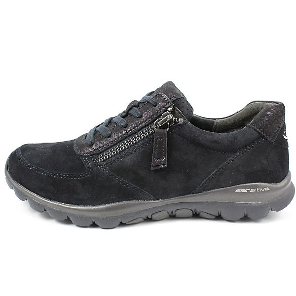 Damen Schnürschuhe von Gabor aus einem feinen hochwertigem Veloursleder. Innen ist der Schuh mit einem cromfrei gegerbtem Leder ausgestattet. Der Schuh hat eine normale Weite. Der Absatz ist durchgehend flach. Die Laufsohle ist aus Gummi. Der Artikel verfügt über einen Schnürverschluss. Die Schuhgröße fällt regulär aus.