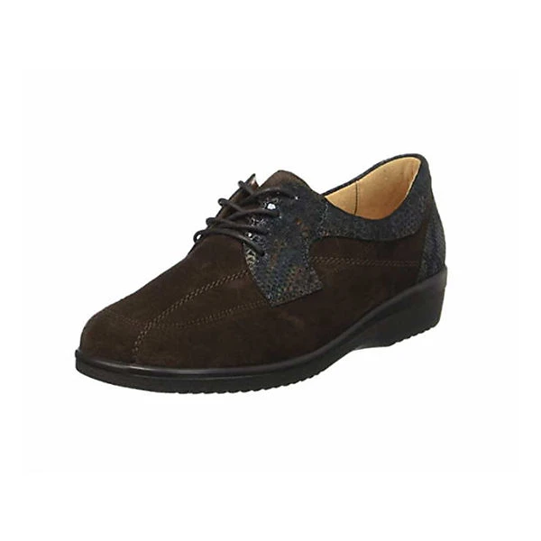 Damen Schnürschuhe von Ganter aus einem feinen hochwertigem Nubukleder. Innen ist der Schuh mit einem cromfrei gegerbtem Leder ausgestattet. Der Schuh verfügt über eine etwas breitere Weite. Der Keilabsatz hat eine Höhe von cirka 2 cm. Die Laufsohle ist aus Gummi. Der Artikel verfügt über einen Schnürverschluss. Die Schuhgröße fällt regulär aus.