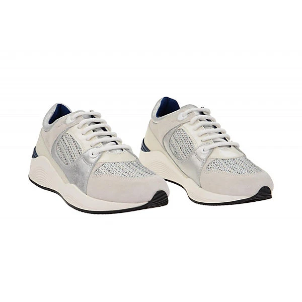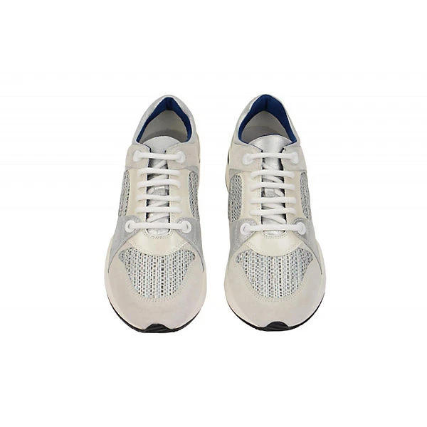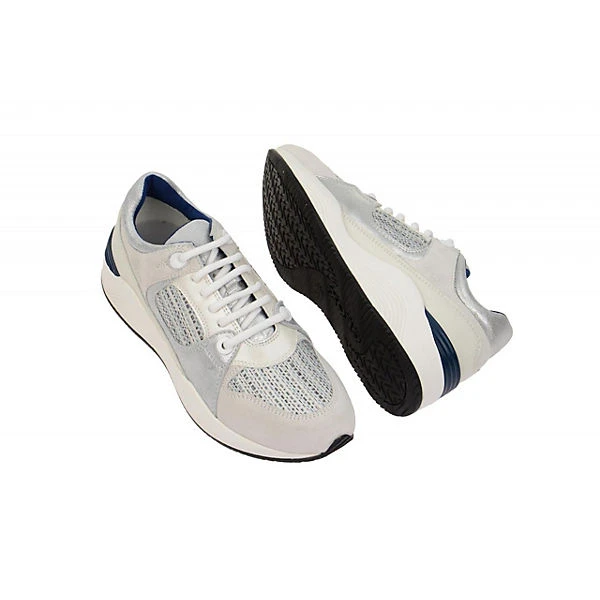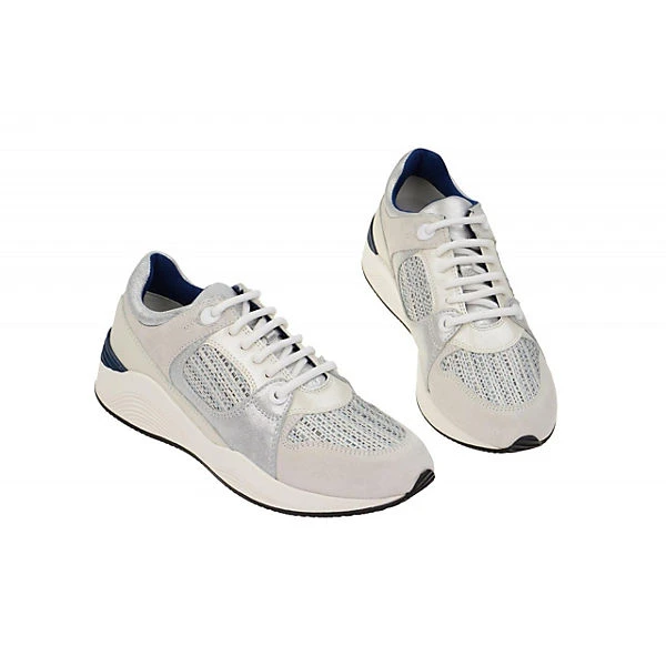 Hersteller: Geox Hersteller Art-Nr.: D540SA 022DS C0856 Modellname: OMAYA Machart: Damenschuhe – sportliche Schnür- Halbschuhe, extra leicht und bequem Farbe: hellgrau + offwhite + silber (off white / lt grey) Obermaterial: Velourleder + Textil / Mesh (Suede / Embr. Textil) Innenfutter: Textil / Mesh – atmungsaktiv Innensohle: Textil – atmungsaktiv Wechselfußbett: Ja – herausnehmbare Innensohle Laufsohle: Polyurethan (PU) – extra leicht und flexibel – GEOX ATMET Verschluss: 6fach Schnürung Absatzart: flach – kein Absatz Schuhform: rund Größenhinweis: fällt normal aus Weitenangabe: G – normal Weite