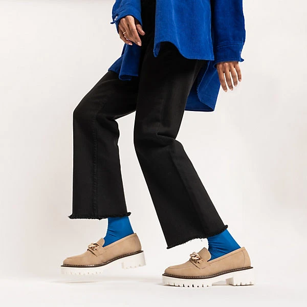 Unterstreichen viele unterschiedliche Outfits: Diese modischen Loafers der Marke Inselhauptstadt. Ein angesagter Begleiter ist dieser Schuh außerdem durch das Plateau. Es handelt sich um ein Modell zum schnellen und einfachen Hineinschlüpfen.
