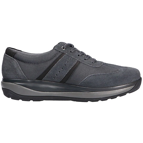 Für die comfort verwöhnten Männer ist das Modell DAVID SLATE der Marke JOYA mit einem hohen Tragecomfort genau das richtige. Das Obermaterial ist aus einer hochwertigen Textil-Leder Kombination. Innen ist der Schuh mit einem elastischen sowie atmungsaktiven Textil augestattet. Die OrthoLite Support Einlegesohle ist sehr leicht und stark atmungsaktiv. Sie besteht aus einem PU-Schaum mit EVA-Verstärkung im Fersen- und Mittelfußbereich für zusätzliche Stabilität.Natürlich ist die Sohle herausnehm- und auswechselbar. Für etwas breite Füße ist dieses Modell(weite G) genau das richtige. Der Keilabsatz hat eine Höhe von cirka 1 cm ,die Sohlenkategorie emotion steht für Freude am Stehen und Gehen.Die weich-elastische Joya Sohle dämpft jeden Stoß ab und unterstützt dadurch effektiv die Entlastung von Rücken und Gelenken. Das Ergebnis: ein einzigartiger Gehkomfort. Ideal für Menschen, die sich und ihre Füße mit einem einzigartig weichen Geh-Gefühl verwöhnen wollen.Die emotion-SENSO Technologie ist besonders weich im Fersen- und Vorfußbereich und bietet durch die starke Dämpfung eine optimale Entlastung.Besonders geeignet für Menschen mit sensiblem Rücken und täglich stark belasteten Füßen und Gelenken. Über den Schnürverschluß ist eine optimale Anpassung an den Fuß möglich. Durch die runde Schuhspitze wirkt der Schuh dezent am Fuß und bietet genügend Platz für die Fußzehen. Die Schuhgröße fällt regulär aus.