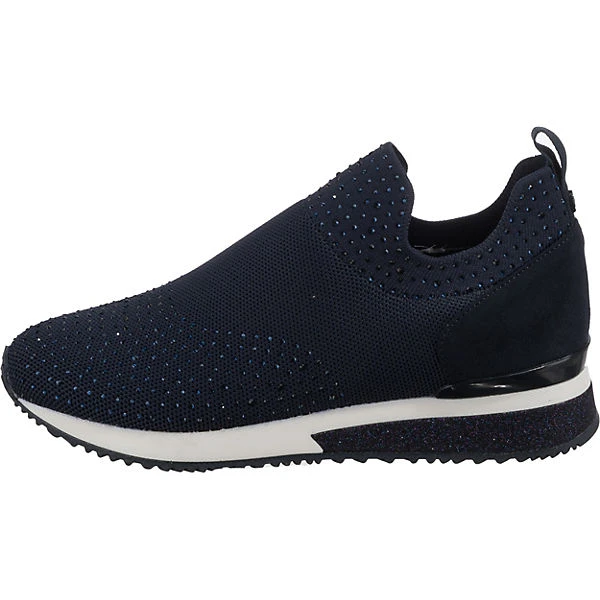 Auf Schritt und Tritt: Die Slip-On-Sneaker von der Marke La Strada© dürfen zu keiner Gelegenheit fehlen. Es handelt sich um ein Modell zum schnellen und einfachen Hineinschlüpfen. Der praktische Materialmix aus Synthetik und Textil im Obermaterial unterstreicht die Aufmachung dieses Schuhpaares.