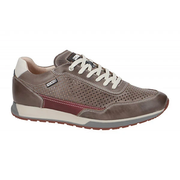 Hersteller: Pikolinos Hersteller Art-Nr.: M5N-6029C1 dark-grey Modellname: CAMBIL Machart: Herrenschuhe – bequeme Schnür Halbschuhe Farbe: dunkelgrau + dunkelrot + weiß (dark grey) Obermaterial: Echtleder – Glattleder (gelocht) Innenfutter: Echtleder – weich gepolstert Innensohle: Echtleder – Fußbett Wechselfußbett: Ja – herausnehmbare Innensohle Laufsohle: Gummisohle Verschluss: 6fach Schnürung Absatzart: flach – kein Absatz Schuhform: rund Größenhinweis: fällt normal aus Weitenangabe: G – normal Weite