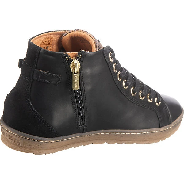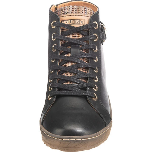 Diese modernen Sneaker von Pikolinos sind ein kleines Highlight für Ihre Füße. Das schwarze Glattleder wurde ergänzt mit Zierschnallen und einer braun karierten Zunge. Während die Schnürsenkel die Schuhe optimal an Ihre Füße heften, sorgen die Reißverschlüsse für einen bequemen Ein- und Ausstieg. Auch ein Labelpatch auf der Zunge darf nicht fehlen und ergänzt den eleganten aber lässigen Look.
