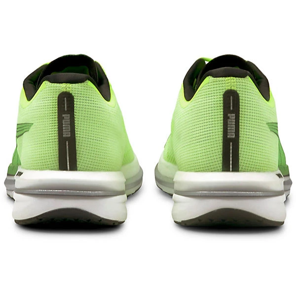 Super leichte Laufschuhe aus nahezu nahtlosem und atmungsaktivem Mesh mit reflektierenden Elementen; klassische Schnürung mit seitlichen Verstärkungen; dämpfende Nitro-Foam Zwischensohle; Obermaterial und Innensohle aus Textil; abriebfeste Pumagrip-Außensohle.