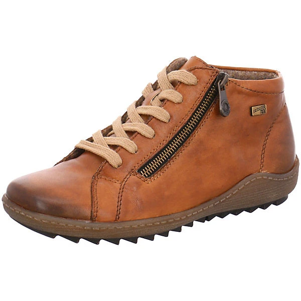 Schicker Lederschnürer mit zusätzlichem Reißverschluss für einen schnellen Ein- und Ausstieg. Der Schuh ist außerdem mit einer schockabsorbierenden Einlage, einem Wechselfußbett, einer leichten und flexiblen Laufsohle und einer optimalen Passform durch mehr Weite ausgestattet. Die Remonte-TEX Ausstattung macht diesen Sneaker atmungsaktiv, kälte- und nässeabweisend sowie wasserdampfdurchlässig.