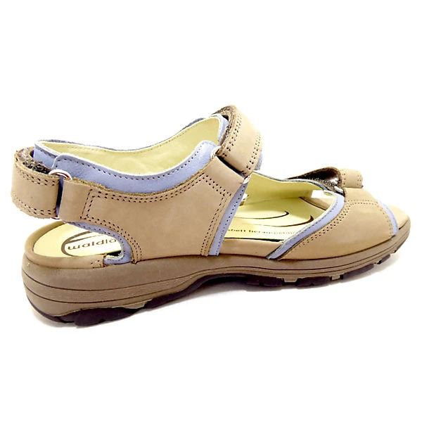 Schöne Sandalen von Waldläufer aus einem feinen hochwertigem Nubukleder. Innen ist der Schuh mit einem cromfrei gegerbtem Leder ausgestattet. Der Schuh verfügt über eine etwas breitere Weite. Der Absatz ist durchgehend flach. Die Laufsohle ist aus Krepp. Der Klettverschluss zum einfachen und bequemen an- und ausziehen sorgt für einen guten Halt.Ebenfalls ist eine stufenlose Anpassung an den Fuß möglich. Die Schuhgröße fällt regulär aus.