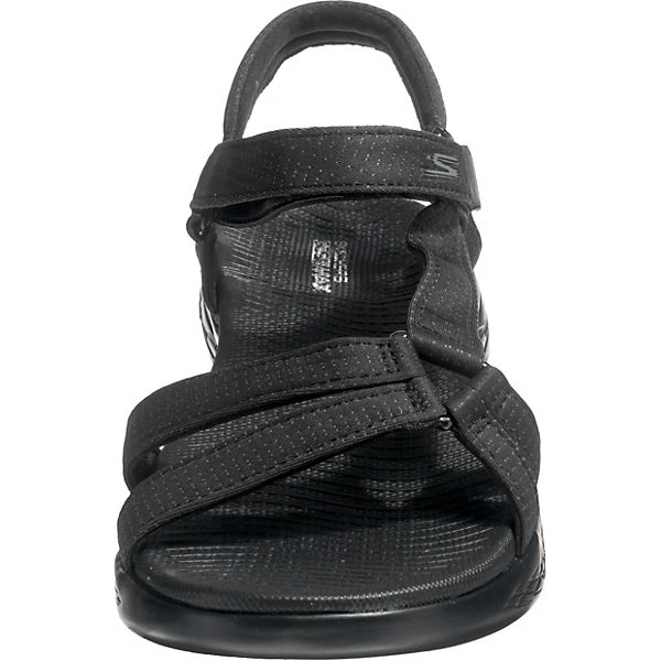 Skechers On-The-Go 600 Damen Sandalen „Brilliancy“ Schwarz mit Ziernähten und feiner Musterung gepolstertes Fersenriemchen Klettverschlüsse 5GEN®-Zwischensohle: sorgt für Komfort und Reaktivität 5GEN®-Zwischensohle: sorgt für Komfort und Reaktivität Goga Max®-Technologie: für innovative Dämpfung und zusätzlichen Halt flexible, leichte Laufsohle weiche Fußbettung