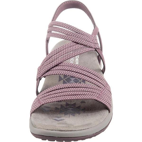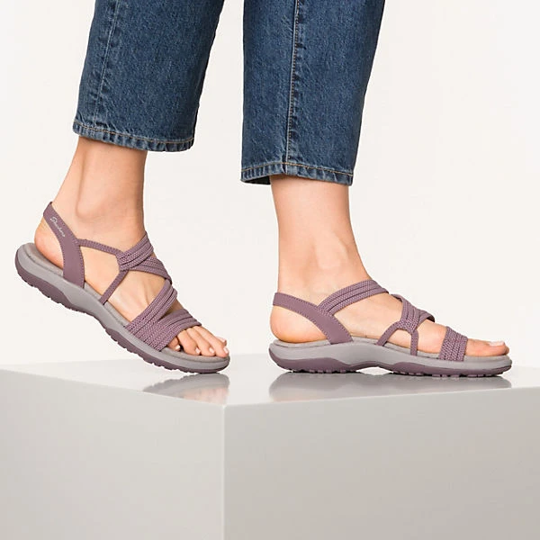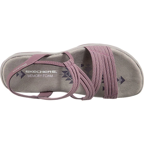 – leichte Sandale für Damen der Marke Skechers – schneller Ein- und Ausstieg durch die elastischen Bänder – weich gepolsterte Innensohle für mehr Laufkomfort – guten Grip bietet die Laufsohle durch die Profilierung im Blumenmuster – maschinenwaschbar