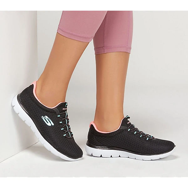 Mit dem SKECHERS Summits Schuh erreichst du in puncto Style und Komfort den absoluten Gipfel. Sportlicher Trainingsschuh zum Hineinschlüpfen mit Bungee-Schnürung, einem nahezu einteilig gearbeiteten Obermaterial aus weichem, glattem Strick-Mesh sowie Ziernähten. Memory Foam Einlegesohle.