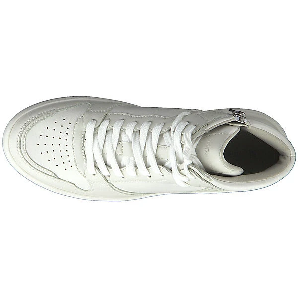 Kunstleder bildet das Obermaterial dieser coolen High-Top Sneaker. Im textilen Innenschuh befindet sich ein Wechselfußbett – ideal für Einlagenträgerinnen. Innenseitig befindet sich ein Reißverschluss für den leichten Ein- und Ausstieg. Super biegsam kommt die Kunststoffsohle daher.