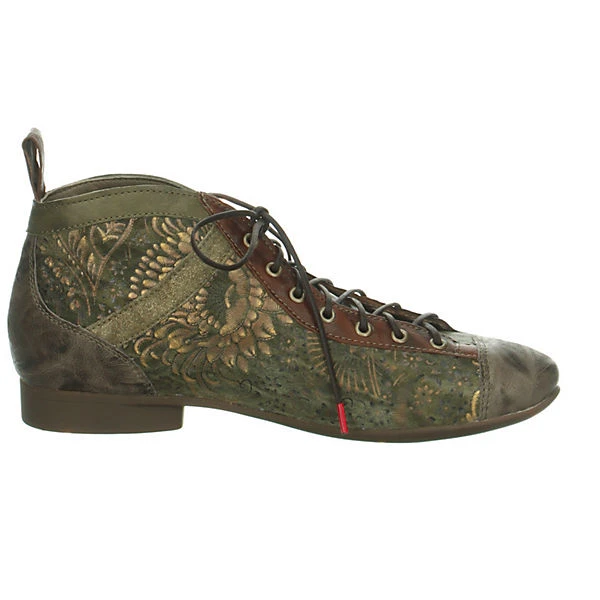 Musterhaft und farbenreich: das ist der GUAD2 Halbschuh für alle, die einen eigenen Kopf haben. Gefertigt aus weichem Nappa- und Effektleder und mit einem chromfrei gegerbten Lederfutter ausgestattet, ist dieser knöchelhohe Think! Schuh auch noch nachhaltig. Der verfeinerte GUAD Leisten bietet genügend Platz im Zehenbereich, während die individuelle Schnürung mit dem Ledersenkel für einen guten Halt und einen eleganten Touch sorgt. Der flache Damen-Schnürer ist zudem mit einer rutschfesten Gummisohle versehen, in die Luftkammern integriert sind. Das wirkt dämpfend und isolierend.