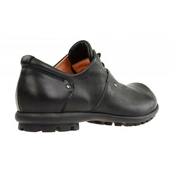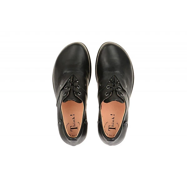 Hersteller: Think Hersteller Art-Nr.: 3-000280-0000 Modellname: KONG Machart: Herrenschuhe – bequeme Schnür Halbschuhe Farbe: schwarz (black) Obermaterial: Echtleder – Glattleder (weiches Nappa Leder) Innenfutter: Echtleder – dünnes Leder Kaltfutter Innensohle: Echtleder Komfort Fußbett Wechselfußbett: Ja mit 2 Innensohlen – variable Paßform Laufsohle: Latex, Profilsohle Verschluss: 3fach Schnürung Absatzart: Blockabsatz Absatzhöhe: kleiner Absatz, ca. 2cm Schuhform: rund Größenhinweis: fällt normal aus Weitenangabe: G+H Weite – zwei Innensohlen
