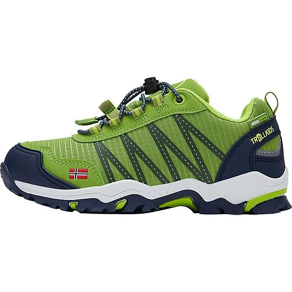 Ideale Begleiter für die Fortbewegung im Freien: Die funktionalen Outdoorschuhe von TROLLKIDS. Das Schnellschnürsystem verspricht eine gute Anpassung an den Fuß bei gleichzeitigem einfachen Anziehen. Die hohe Atmungsaktivität und die leichte Beschaffenheit ergeben sich aus dem Mesh-Mix. An nassen Tagen besticht dieses Modell mit wasserdichten und atmungsaktiven Merkmalen des Obermaterials.