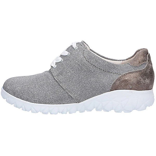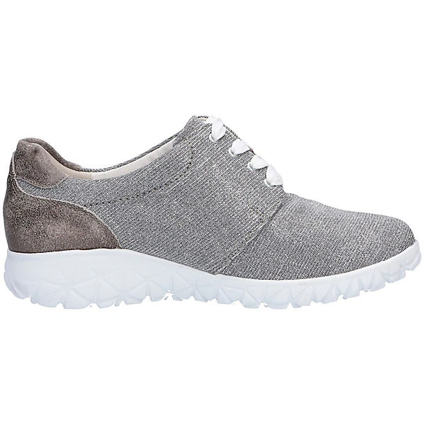 Schöner Comfort Damenschnürschuh der Marke Waldläufer aus einem hochwertigen Textil. Das exzellente Innenleben aus bestem Leder gibt Ihnen ein erholsames Gefühl an langen Tagen. Die lederbezogene, gepolsterte Einlegesohle ist herausnehmbar.Somit können eigene Einlagen verwendet werden. Der Schnitt ist für breitere Füße (Weite H) geeignet. Der Keilabsatz hat eine Höhe von cirka 2 cm ,die aus einem weichen PU-Material bestehende Laufsohle schont die Gelenke und federt jeden Tritt optimal ab. Über den Schnürverschluß ist eine optimale Anpassung an den Fuß möglich. Durch die runde Schuhspitze wirkt der Schuh dezent am Fuß und bietet genügend Platz für die Fußzehen. Die Schuhgröße fällt regulär aus.