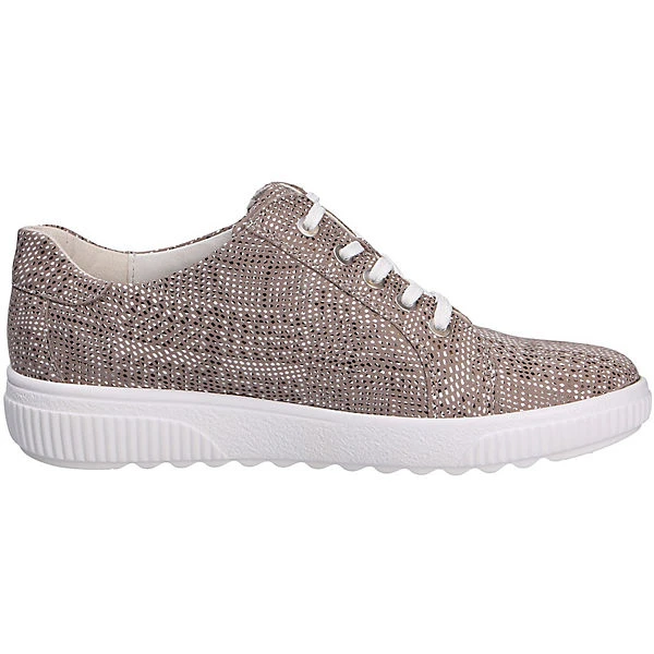 Schöner Comfort Damenschnürschuh der Marke Waldläufer aus einem feinen hochwertigem Nubukleder.Die angeraute Oberfläche ist besonders weich und gibt dem Leder ein angenehmes Gefühl. Das exzellente Innenleben aus bestem Leder gibt Ihnen ein erholsames Gefühl an langen Tagen. Die lederbezogene, gepolsterte Einlegesohle ist herausnehmbar.Somit können eigene Einlagen verwendet werden. Der Schnitt ist für breitere Füße (Weite H) geeignet. Der Absatz ist durchgehend flach ,die aus einem weichen PU-Material bestehende Laufsohle schont die Gelenke und federt jeden Tritt optimal ab. Über den Schnürverschluß ist eine optimale Anpassung an den Fuß möglich. Durch die runde Schuhspitze wirkt der Schuh dezent am Fuß und bietet genügend Platz für die Fußzehen. Die Schuhgröße fällt regulär aus.