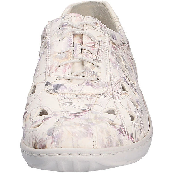 Schöner Comfort Damenschnürschuh der Marke Waldläufer aus einem feinen hochwertigem Glattleder.Dieses Leder verleiht einen edlen Look und ist gut zu pflegen. Das exzellente Innenleben aus bestem Leder gibt Ihnen ein erholsames Gefühl an langen Tagen. Die lederbezogene, gepolsterte Einlegesohle ist herausnehmbar.Somit können eigene Einlagen verwendet werden. Der Schnitt ist für breitere Füße (Weite H) geeignet. Der Absatz ist durchgehend flach ,die aus einem weichen PU-Material bestehende Laufsohle schont die Gelenke und federt jeden Tritt optimal ab. Über den Schnürverschluß ist eine optimale Anpassung an den Fuß möglich. Die karree-förmige Schuhform hat zwei Vorteile: Sie wirkt sportlich und bietet einen angenehmen Tragecomfort für den Fuß und die Fußzehen. Die Schuhgröße fällt regulär aus.